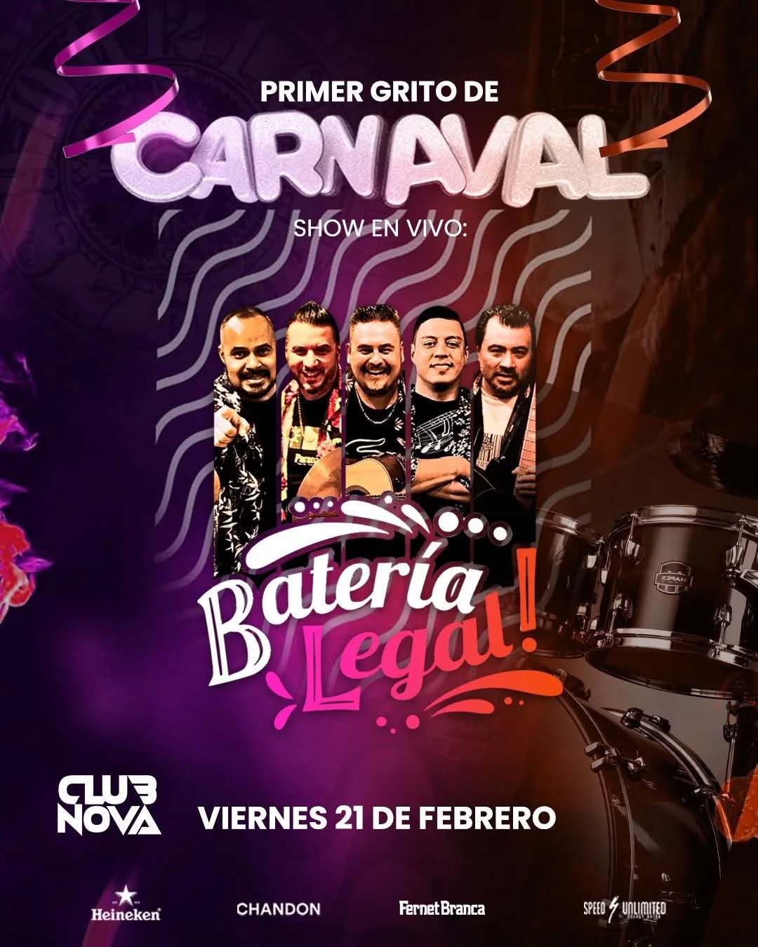 Por eso este viernes 21 de febrero no te pierdas el show en vivo de Bateria Legal.