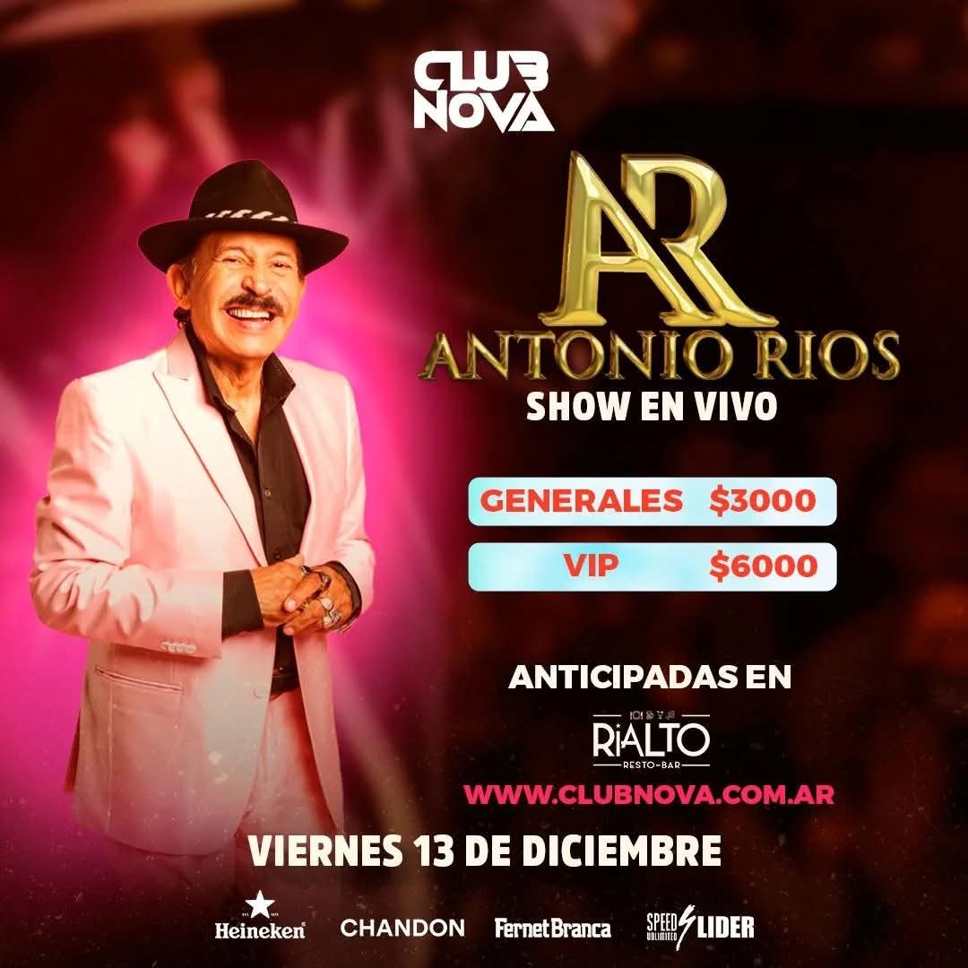 ¡Este viernes, show en vivo de Antonio Ríos en Club Nova!