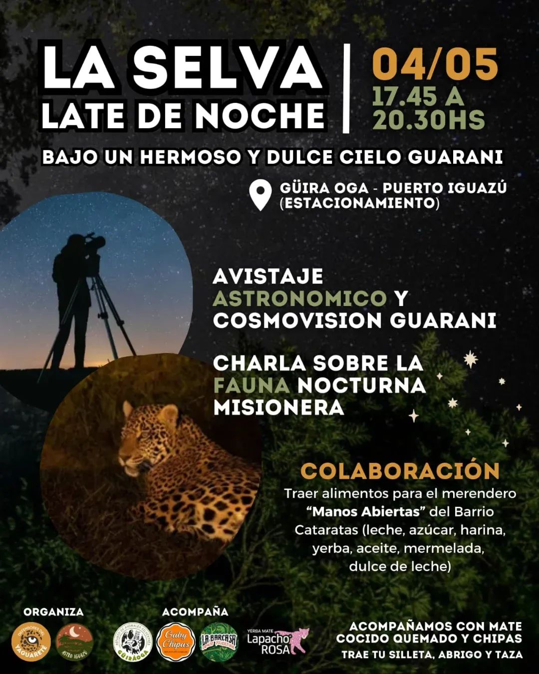 Uníte a una experiencia mágica en la selva de Puerto Iguazú.. Defensores del Yaguareté y Astro Iguazú organizan un evento único el próximo domingo 4 de mayo.