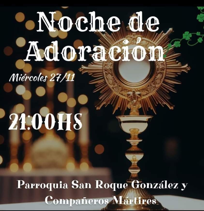 Les hacemos la más cordial invitación para que sean participes de la noche de adoración al Santísimo Sacramento del Altar, este miércoles 27 de noviembre a partir de las 21:00 hs en la Parroquia San Roque González de Santa Cruz y Compañeros Mártires ubicado en el Barrio Iprodha de Puerto Iguazú.