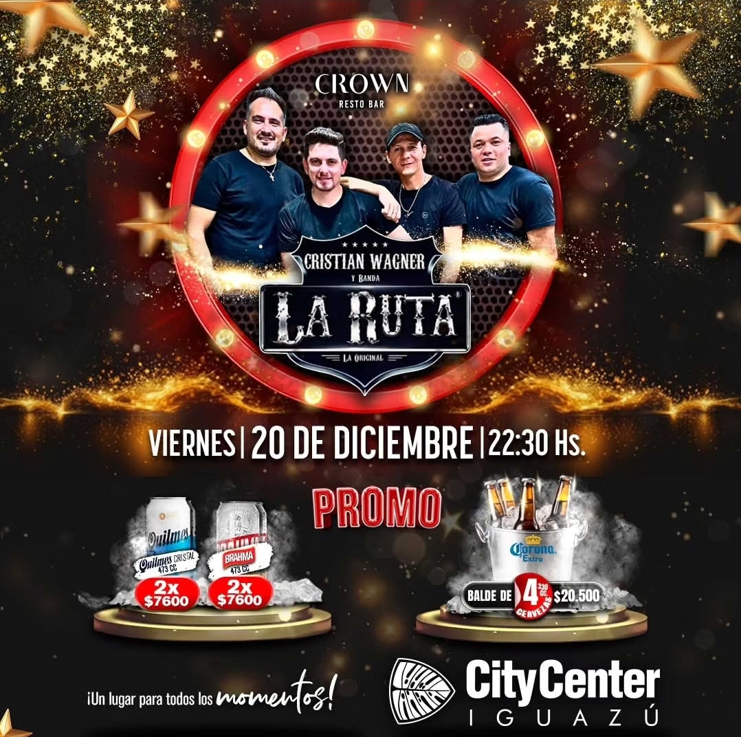 El próximo viernes 20 de diciembre, no te pierdas el show en vivo de @cristianylarutaoficialok en City Center Iguazú.