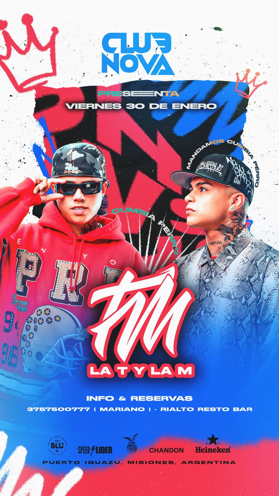 Prepárense para la verdadera "fiesta mundialista" Tobías Medrano y Matías Rapen, la dupla que hizo bailar a toda la Argentina, desembarca este viernes 30 de enero en Club Nova. Con sus canciones que conquistaron al país durante el Mundial, "La T y la M" promete una noche inolvidable. ¡No te pierdas la oportunidad de verlos...