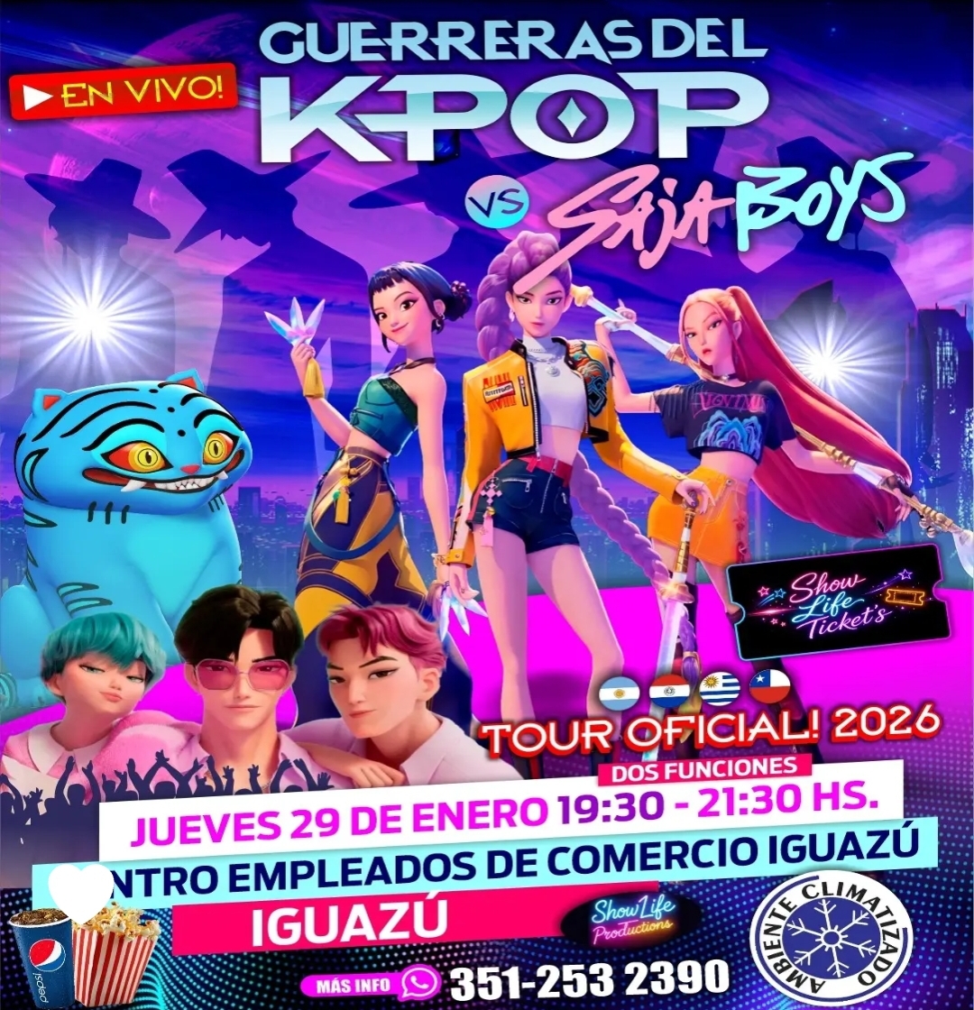 ¡K-POP NUEVAMENTE INVADE IGUZÚ! GUERRERAS DEL K POP IGUZÚ 2026 👉 Jueves 29 de Enero - 19:20hs y 21:30hs (DOBLE FUNCIÓN) 👉 Centro Empleados de Comercio - Iguazú 🎤 Coreografías épicas, música y mucho color 💃 🔥 ¡No te pierdas a las GUERRERAS KPOP en vivo! 📍 Entradas disponibles en Eventiva.com.ar - VIP (primeras 8...