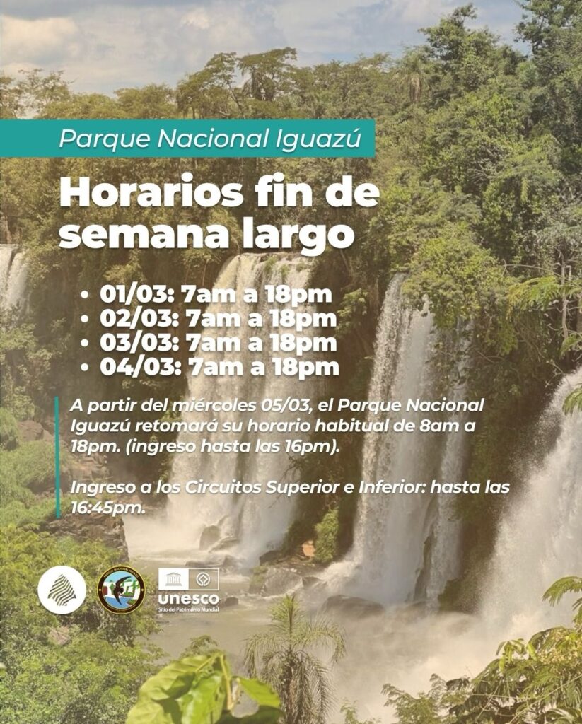 Del 1 al 4 de marzo: 7:00 am a 18:00 pm. A partir del 5 de marzo, el parque retomará su horario habitual: 8:00 am a 18:00 pm (ingreso hasta las 16:00 pm).