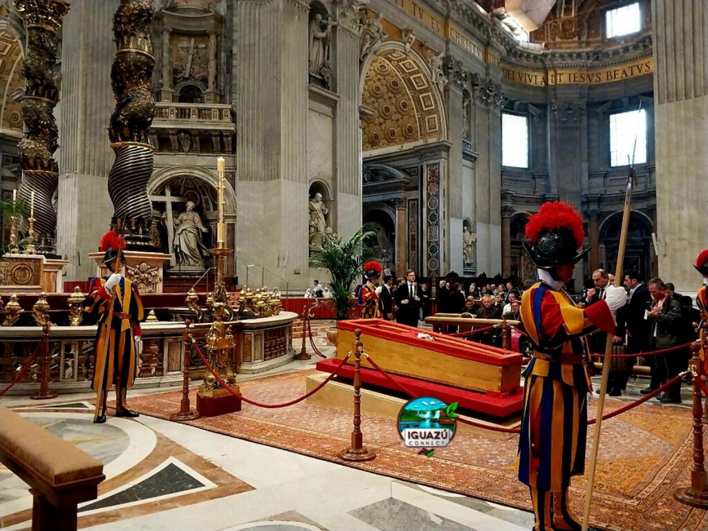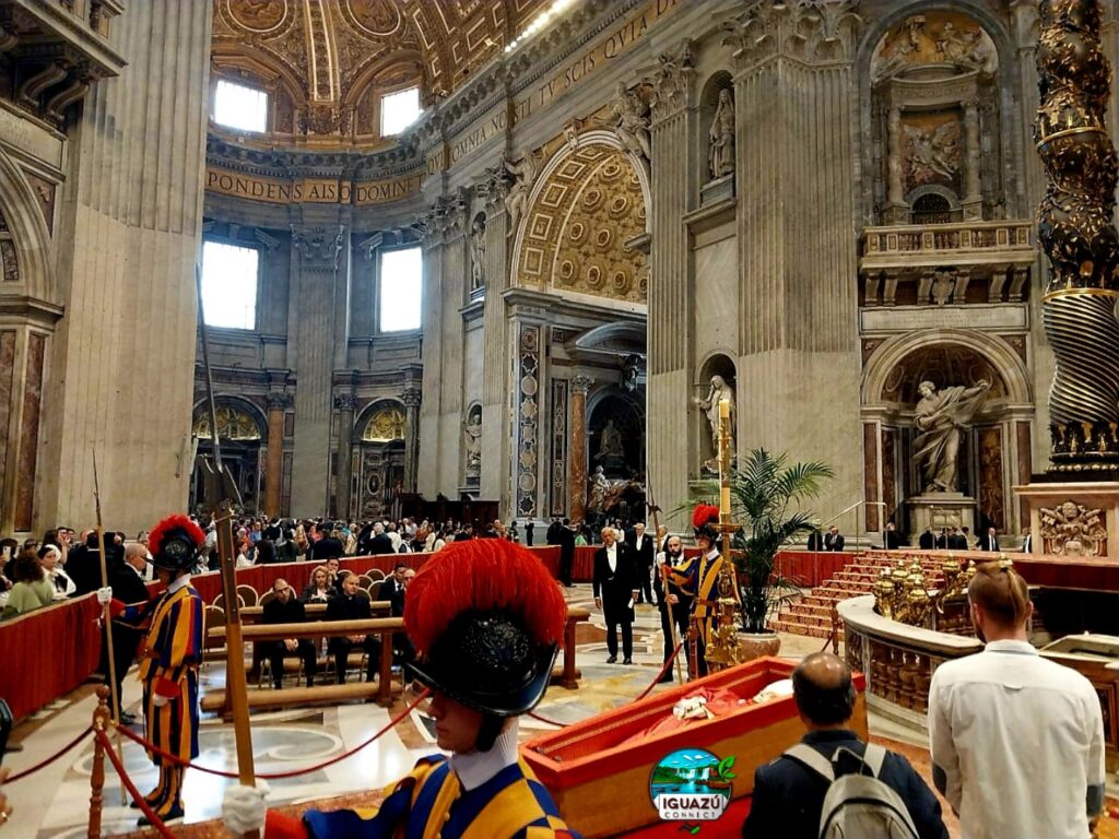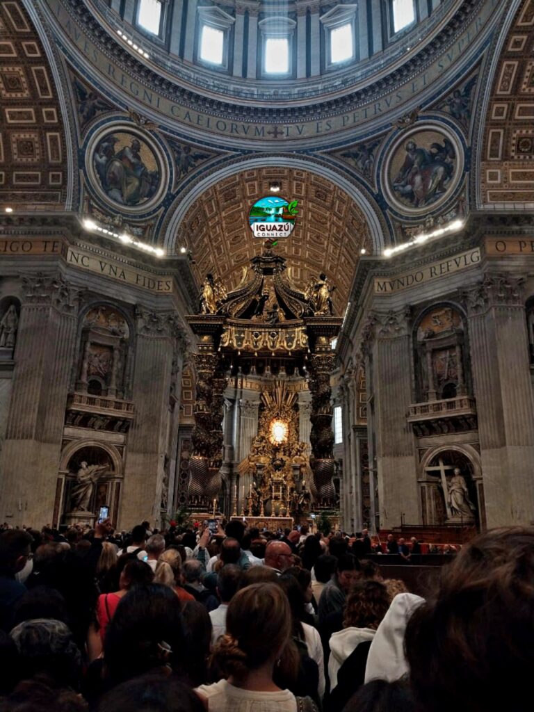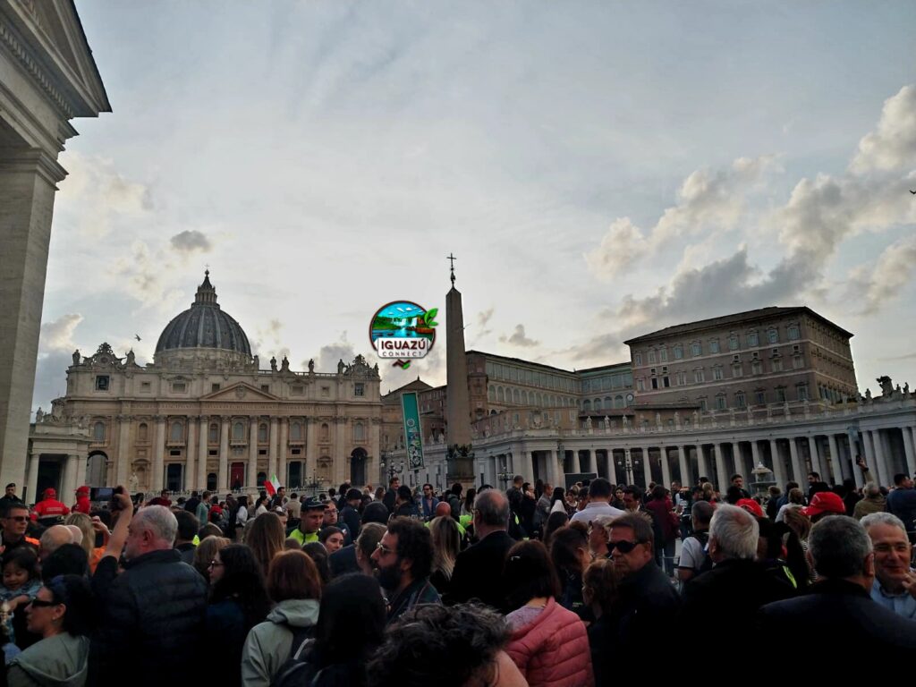 Pero hubo un momento más, un último encuentro que quedará grabado en el corazón del P.Alejandro; quien luego de horas de fila – junto a miles de fieles que con emoción, respeto y devoción esperaban – finalmente se paró frente al féretro del Papa Francisco en la Plaza de San Pedro para despedirse en nombre de toda la Diócesis de Puerto Iguazú. Con el corazón triste y una mirada nostálgica, elevó una oración por su alma y eterno descanso, agradeciendo su legado y cercanía. Fue un momento de profunda emoción y gratitud, donde el P.Alejandro pudo despedirse de su querido Pastor y guía de toda la Iglesia.